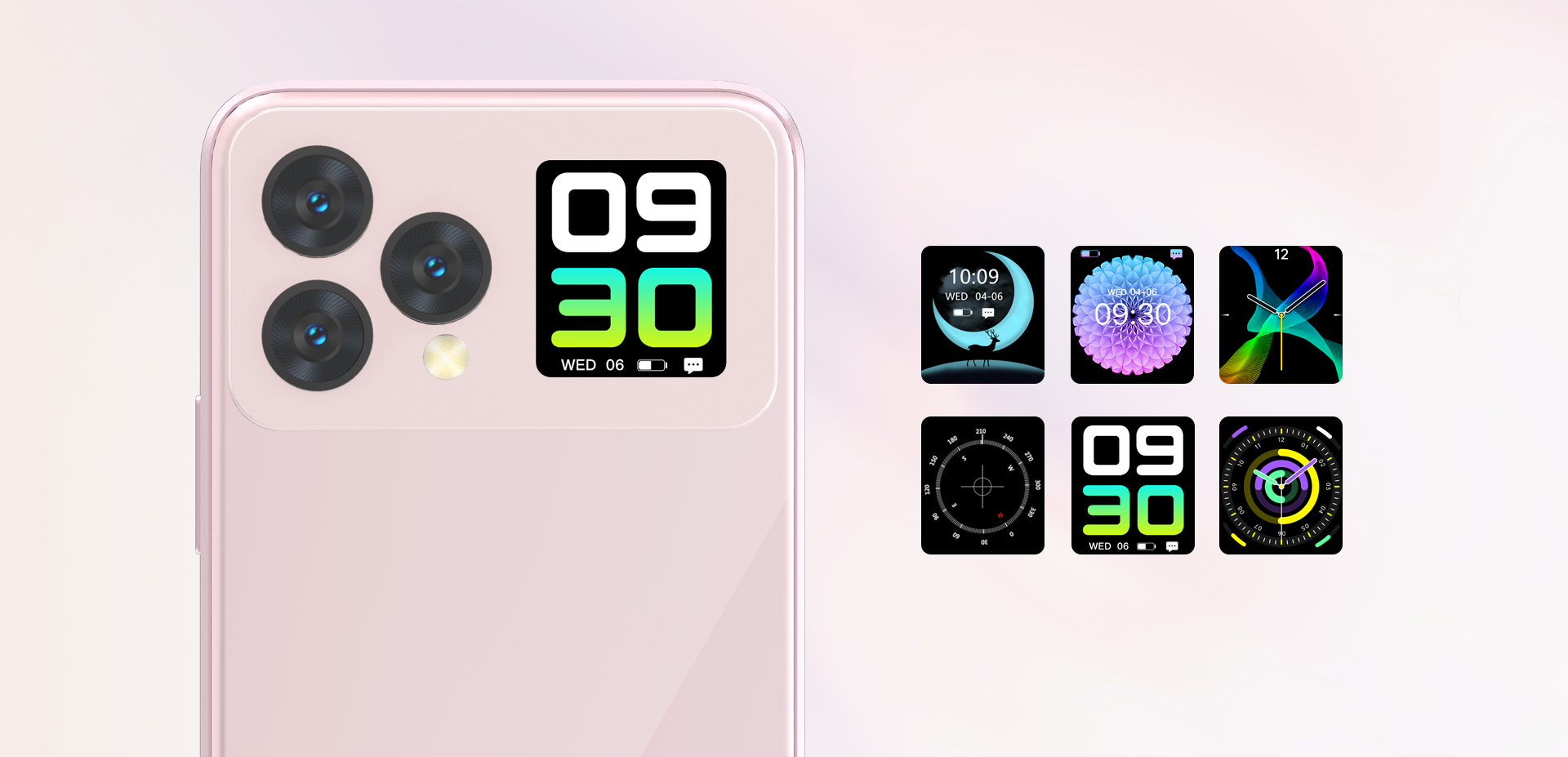 Experience innovation with the 1.41-inch square AMOLED back screen.